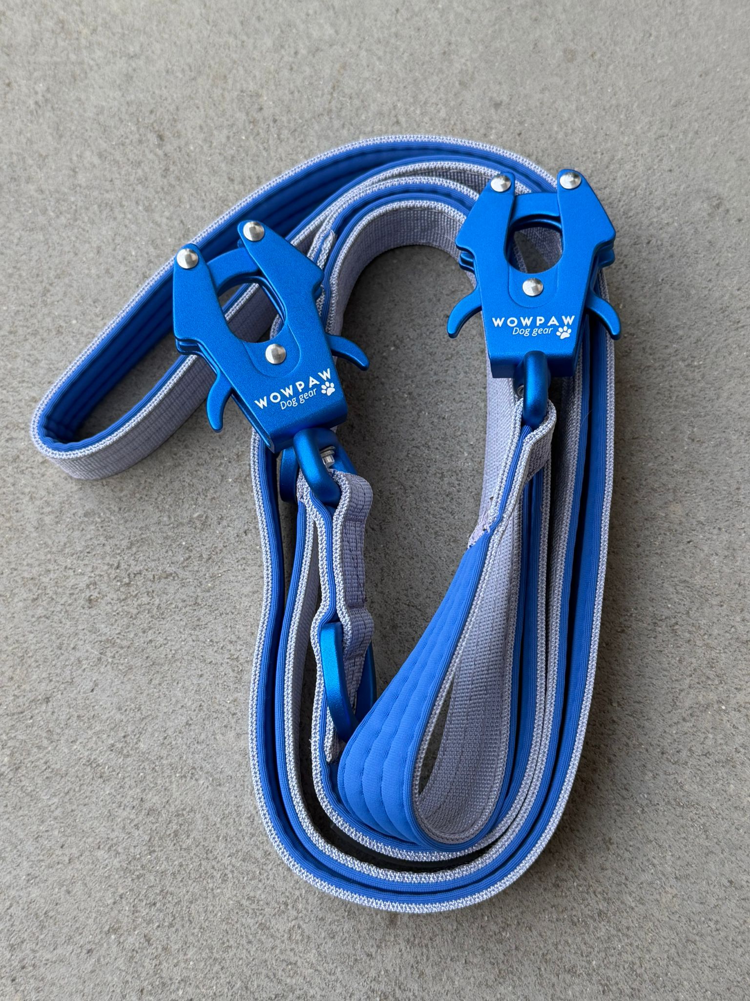 Die eloxierte Beschichtung des Karabiners kann sich mit der Zeit durch Reibung oder Kontakt mit harten Oberflächen abnutzen. Die Funktion der Leine bleibt davon unberührt.