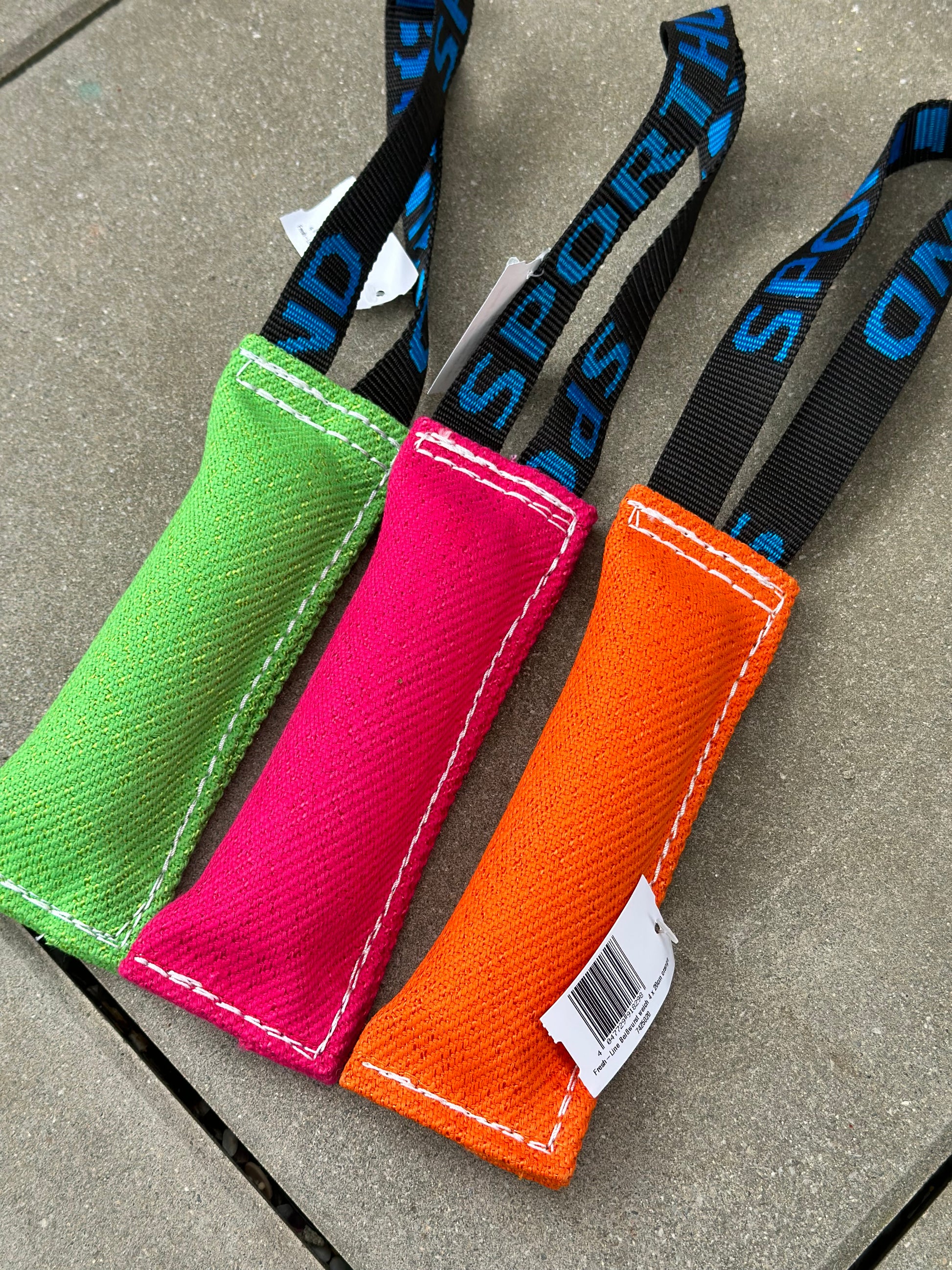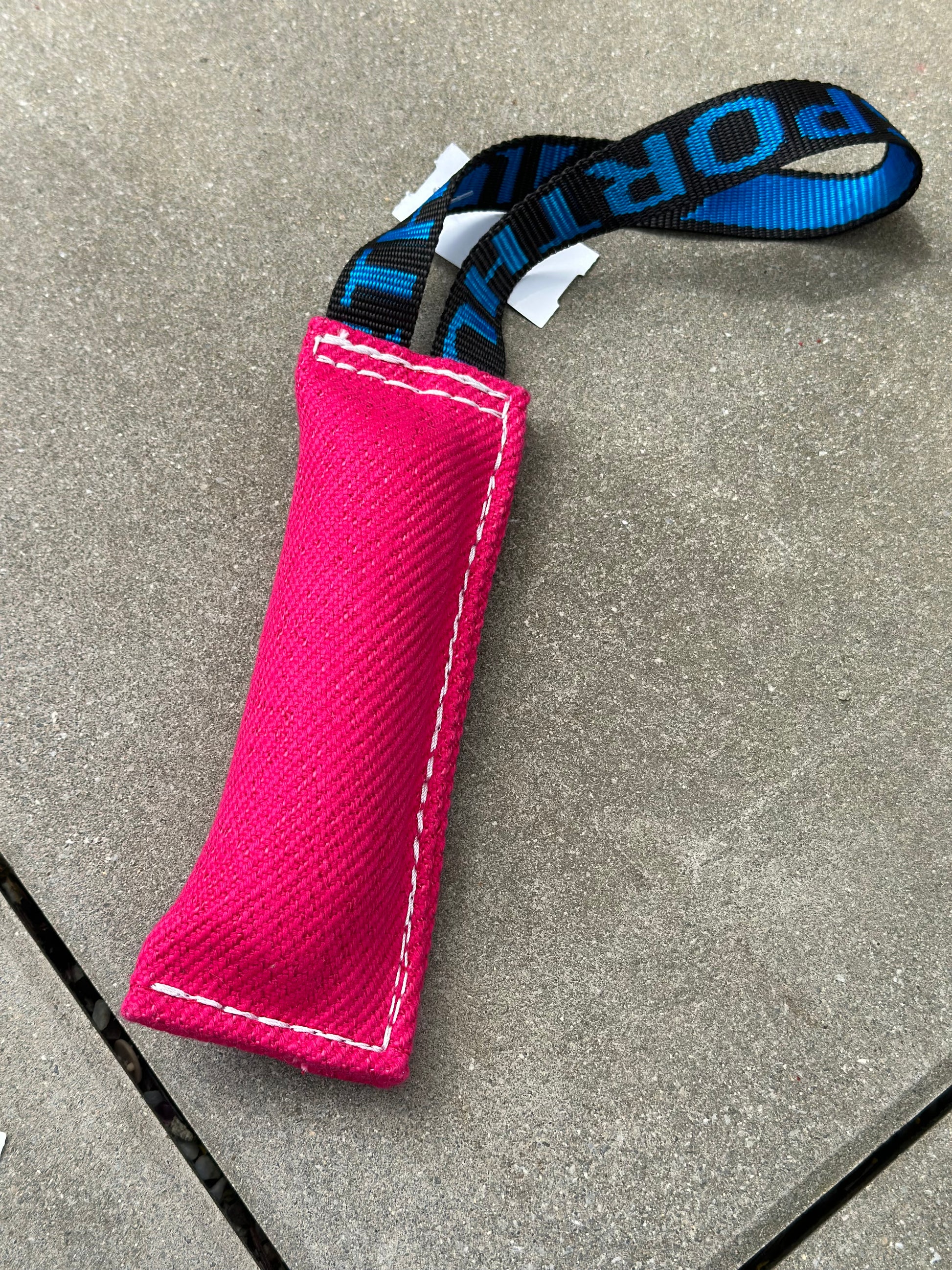 Wytrzymała, miękka i kolorowa zabawka do żucia wykonana z nylonu z pętelką na rękę.